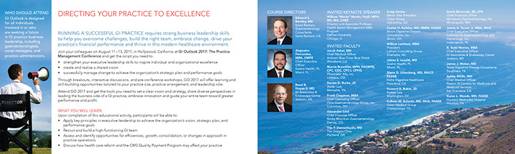 Project: Designed the 2017 GO Practice Management Campaign. With the meeting this year taking place in Hollywood California, course directors wanted to focus on a Hollywood / movie industry theme. The campaign's design both sells the location and the idea of the movie director and practice director's roles in success. Designed the campaign's promotional brochure, web advertising, web graphics, email headers and print advertising.