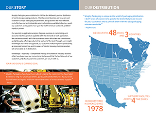 Designed Murphy Packaging's logo, corporate identity and marketing collateral for prospective and new clients. With the sleek, modern outlines of stretch film and packaging tape, the new logo reflects the